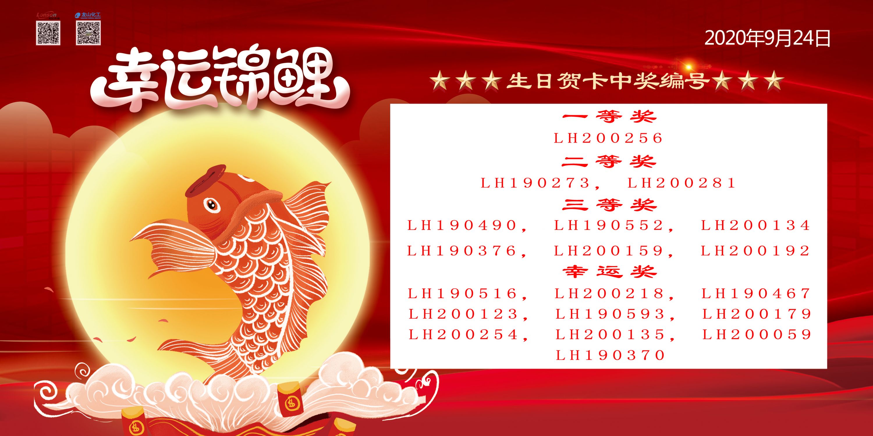 2020年杭州龙山化工职工生日贺卡抽奖中奖名单